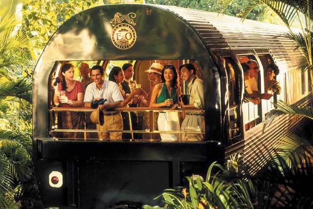 Atravessando o continente asiático, o trem Eastern & Oriental Express passa por florestas equatoriais, montanhas, templos antigos e vilarejos escondidos na Tailândia, Malásia e Cingapura. Além da ótima comida servida a bordo, com destaque para pratos asiáticos e europeus, a viagem oferece excelentes vinhos, apresentações de um pianista, loja de souvenirs e sala de leitura.