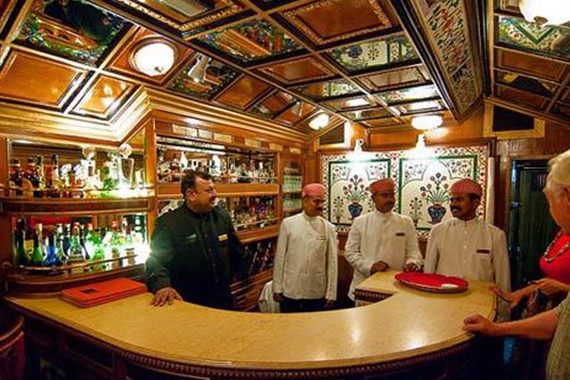Desfrute da gastronomia tradicional indiana em um dos vagões restaurante, leia um livro na biblioteca, conheça outros hóspedes no vagão lounge e bar ou relaxe com uma experiência de marajá no vagão spa após um longo dia de excursões e visitas.